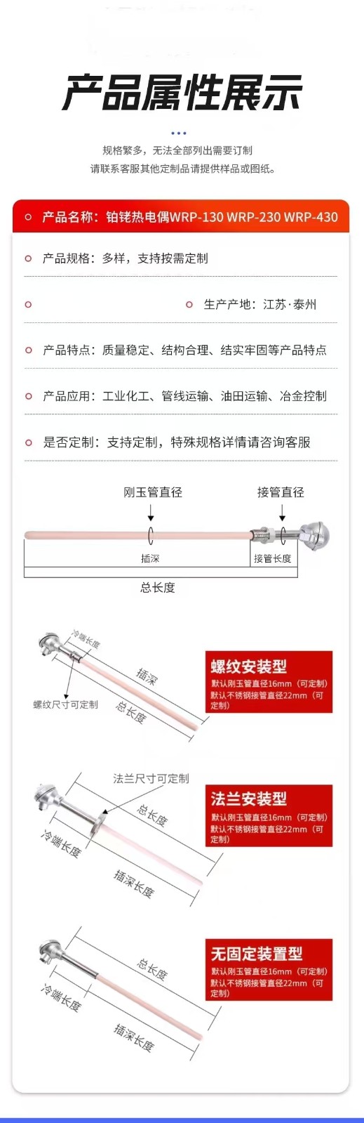GH3039不銹鋼裝配式鉑銠熱電偶